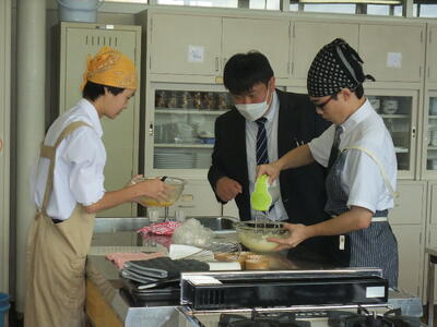10月21日(火)にJAグループ主催による「シュガーセミナーインハイスクール」を実施しました。講師に三笠高校出身で現在は洋菓子店を経営されている田中様、調理師として活動されている市川様、そして道新サービスセンターの堀様を講師に招いての授業となりました。砂糖についての正しい知識を学び、さらに、パティシエ田中様からはパウンドケーキの作り方をひとつひとつの工程を丁寧に教えていただき、ふっくら美味しいパウンドケーキを作ることができました。