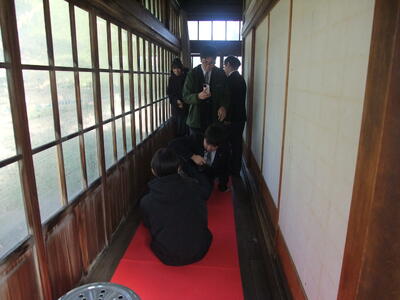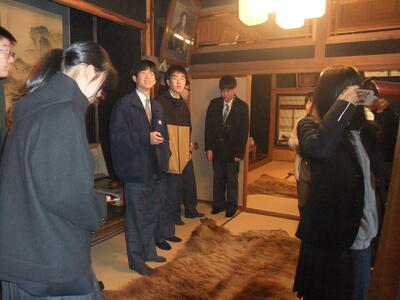 2学年の歴史総合の授業内で、町指定歴史的遺産である米田御殿の見学を実施しました。興部町教育委員会から大石涼夏様にお越し頂き、スライドを用いて米田御殿に関する説明をしていただきました。その後、米田御殿へ移動し、内部を見学させていただきました。普段は見ることのできない貴重な掛け軸等も見せていただき、大正時代の文化に触れる貴重な経験となりました。今回の見学実施にあたりご協力いただいた大石様、見学前に御殿の清掃をしてくださった皆様、本当にありがとうございました。